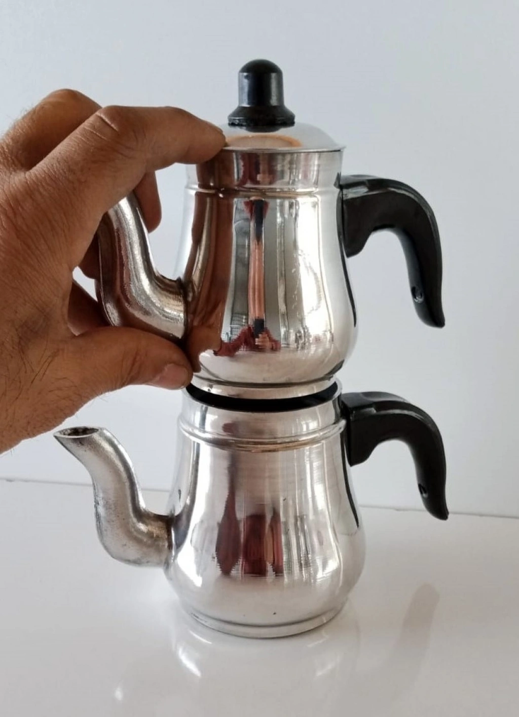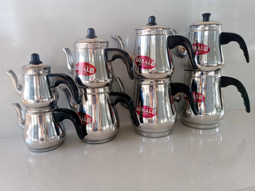 Mini çaydanlık, sıfır (0) numara. Çok küçük şirin'mi şirin, küçücük aluminyum çaydanlık. Sıfır numara. Alt kısım 0.50 ml. (yarım litre) üst kısım 0.30 ml. Genellikle hediye olarak veya vitrinde veya camekanda dekor olarak/görsel olarak tercih edilen, Özellikle çok küçük minik bir ürün olduğu için kupon bir ürün. Ama isterseniz çay içmek için'de kullanılabilen, yaklaşık bir kişilik, En fazla 3-4 bardak çay için kullanılabilir. İmalattan Sıfır ürün. Stoklu olarak elimizde mevcut.