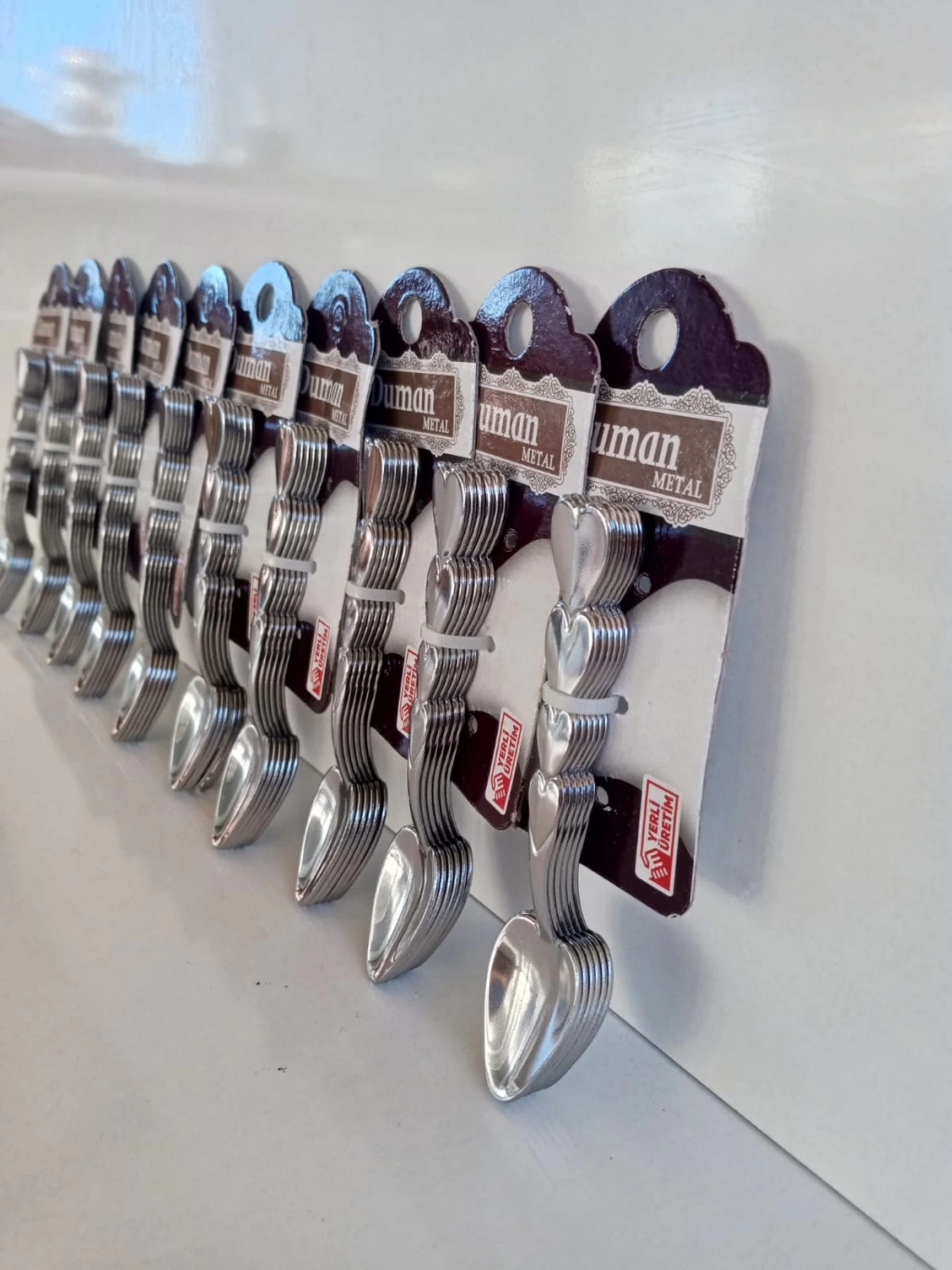 6'lı Çay Kaşığı desenli. Uzunluk 11 cm, 430 kalite 1,2 mm kromdan üretilmiştir, İnce sac değildir. Fiyat 10 takım için eçerlidir. 10 tane 6'lı takım gönderilecektir.