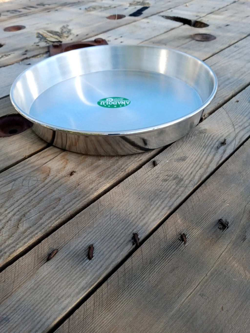 32 numara Aluminyum düz tepsi "fırın tepsisi olarakta bilinir." 32 cm çapında çok amaçlı kullanışlı düz tepsi. Evde mutfakta fırında bağda bahçede ateşte soba üstünde piknikte hemen her alanda işinizi görebilecek çok kullanışlı/amaçlı kapaklı kulplu aluminyum tava. "Üreticisinden"