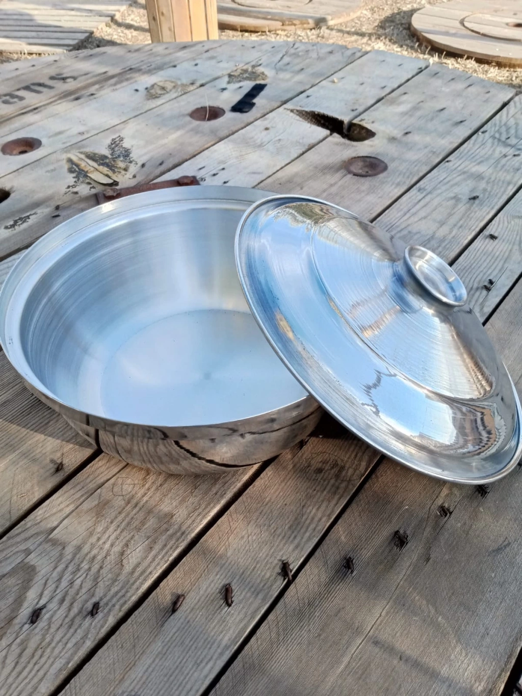 32 numara Aluminyum kulpsuz büyük derin kapaklı tencere. 32 cm çapında çok amaçlı kullanışlı kulpsuz büyük derin tencere. Evde mutfakta bağda bahçede ateşte soba üstünde piknikte hemen her alanda işinizi görebilecek çok kullanışlı/amaçlı kapaklı kulpsuz aluminyum tencere. "Üreticisinden"
