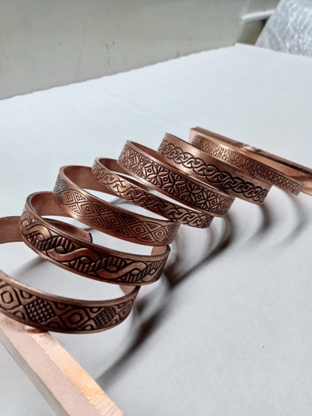Motifli Bakır Bileklik, Kalınlık 2 mm En 12 mm.