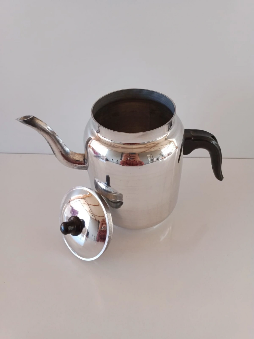 5 numara Büyük Kahveci demliği Aluminyum "2 litre su kapasitesi vardır. Özellikle kahvehane'lerin tercih ettiği, fakat haricen Evde, mutfakta, kampta, bağda bahçede, ateşte üstünde, soba üstünde, piknikte hemen her alanda işinizi görebilecek çok kullanışlı/çok amaçlı kapaklı ve bakalit kulplu aluminyum demlik. "Üreticisinden"