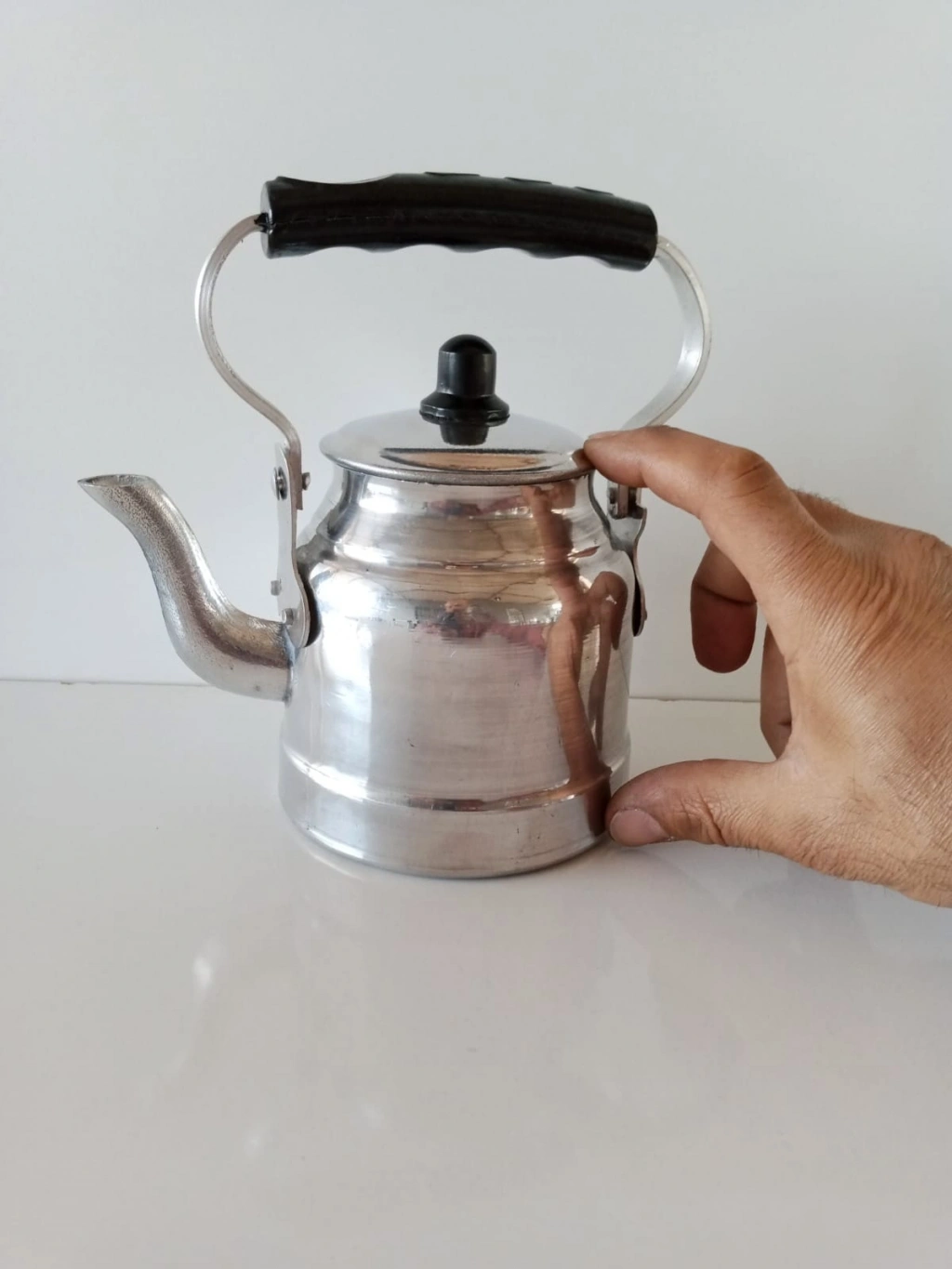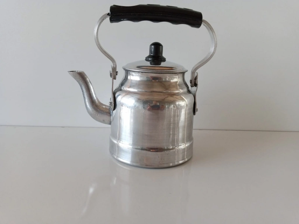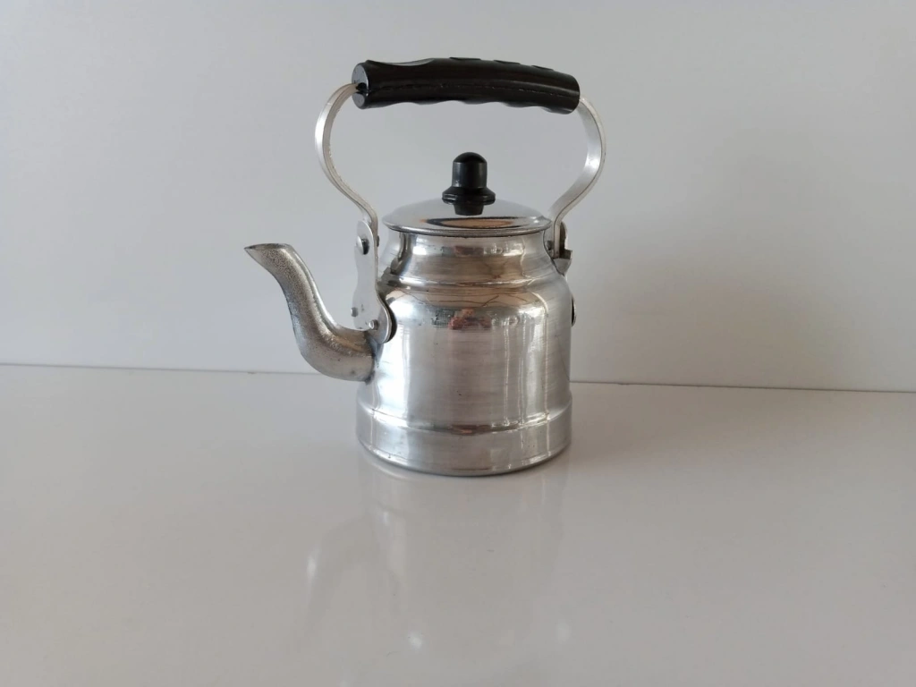 Mini Üstten kulplu çaydanlık (Çoban çaydanlığı) sıfır ürün. 12 numara. Çok küçük şirin'mi şirin, küçücük aluminyum çaydanlık. Su kapasitesi 0.90 ml, yaklaşık 1 litre. Genellikle hediye olarak veya vitrinde veya camekanda dekor olarak/görsel olarak tercih edilen, Özellikle çok küçük minik bir ürün olduğu için kupon bir ürün. Ama isterseniz çay içmek için'de kullanılabilen, yaklaşık bir kişilik, En fazla 3-4 bardak çay için kullanılabilir. İmalattan Sıfır ürün. Stoklu olarak elimizde mevcut.